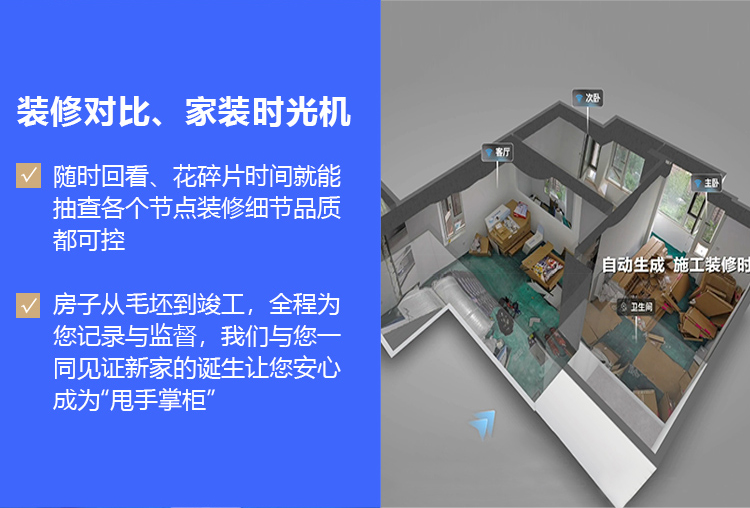 让业主不用费时费力跑工地,也能清晰了解装修每一个环节。将装修主动权交给业主,实时了解装修进度和情况,